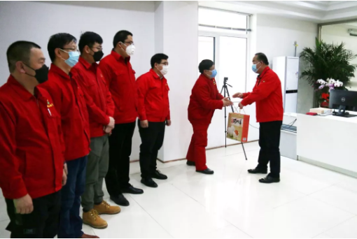 因?yàn)榇蟛糠值尼t(yī)護(hù)家屬們都在抗“疫”一線或隔離狀態(tài),慰問活動(dòng)只能在公司會議室與公司職工面對面進(jìn)行。在會議室,公司領(lǐng)導(dǎo)班子成員對職工們的生活情況進(jìn)行了仔細(xì)詢問,并著重了解他們生活中的實(shí)際困難。同時(shí),公司為他們送上了生活必需品,把關(guān)愛員工,尤其是家屬奮戰(zhàn)在防疫一線的職工落到實(shí)處。
