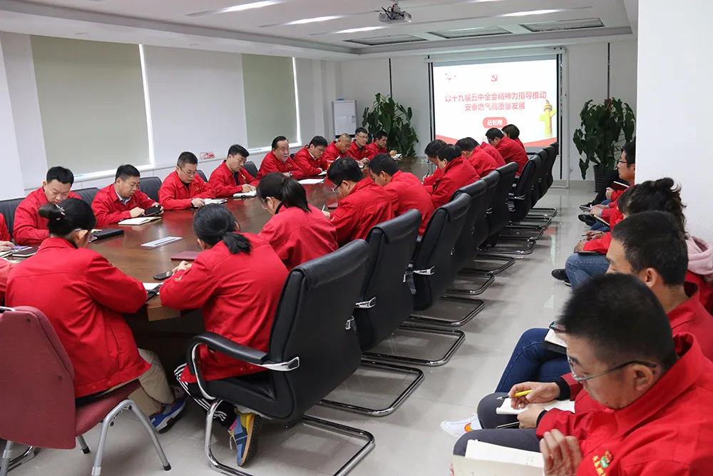 會議由安泰燃氣黨支部書記、常務副總佟慶主持。全體黨員、預備黨員、積極分子和中層干部共同聆聽,反響熱烈。