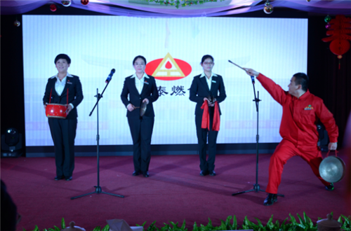 聯(lián)合會(huì)以熱情奔放的舞蹈《相親相愛》拉開了帷幕;以“和諧·平安·共創(chuàng)美好未來(lái)”為主旋律,將安泰燃?xì)馊珕T的日常工作和生活與公司以人為本的發(fā)展理念緊密聯(lián)系起來(lái),用歡快愉悅的藝術(shù)形式展現(xiàn)了安泰燃?xì)馊珕T陽(yáng)光向上、積極進(jìn)取的精神風(fēng)貌。安泰員工精心編排的紅歌大合唱《四渡赤水出奇兵》、《山丹丹開花紅艷艷》讓觀眾重溫了紅軍長(zhǎng)征的革命壯舉,銘記長(zhǎng)征精神的高尚品德,合唱團(tuán)的精彩表演,更是博得觀眾陣陣掌聲;獨(dú)具匠心的音樂(lè)快板《安泰贊》表達(dá)了員工對(duì)公司的熱愛之情;客服部的小品《收費(fèi)大廳的故事》,把燃?xì)夤救粘C嫦蛴脩舻姆?wù)工作標(biāo)準(zhǔn)與現(xiàn)實(shí)問(wèn)題巧妙結(jié)合,妙趣橫生,引發(fā)現(xiàn)場(chǎng)陣陣歡笑,更是把晚會(huì)氣氛推向高潮。整場(chǎng)聯(lián)歡會(huì)內(nèi)容豐富,唱歌、相聲、三句半、音樂(lè)快板等形式多樣,充分體現(xiàn)出領(lǐng)導(dǎo)與員工其樂(lè)融融的歡慶場(chǎng)面。
