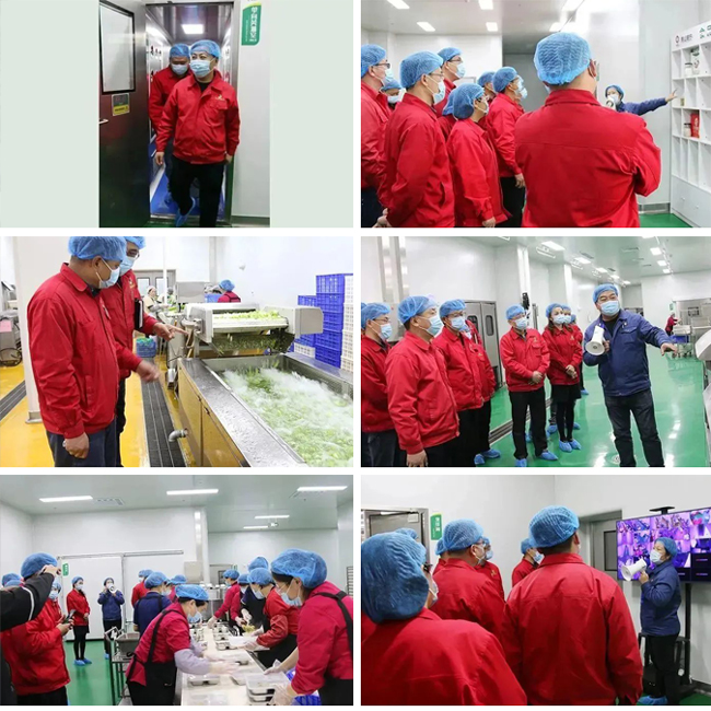 首先,一行人統(tǒng)一換上頭套、鞋套進(jìn)入“風(fēng)淋室”清潔,隨后在食堂工作人員的帶領(lǐng)下依次進(jìn)入中央廚房配餐中心。參觀中大家了解到,配餐中心所有食材均遵循“食以安為天”的原則,建立了嚴(yán)格的食品安全管控體系,統(tǒng)一招標(biāo)采購(gòu)、統(tǒng)一管理、統(tǒng)一配制,保障了制作、配餐的可追溯性。新的中央廚房生產(chǎn)線采用多種先進(jìn)生產(chǎn)設(shè)備,可實(shí)現(xiàn)原料入庫(kù)、加工、包裝、儲(chǔ)存、配送全程實(shí)時(shí)監(jiān)控、批批檢測(cè),從而確保產(chǎn)品質(zhì)量和口感。全新的配餐系統(tǒng)和高標(biāo)準(zhǔn)的加工配送體系,無(wú)不體現(xiàn)出硬件上選型上的“高精尖”和服務(wù)著陸上的“軟實(shí)力”,讓大家親眼見(jiàn)識(shí)到食品生產(chǎn)標(biāo)準(zhǔn)化流程的同時(shí),開(kāi)闊了眼界,也從中深刻體會(huì)到“盡心盡力、盡職盡責(zé)”的深刻含義。