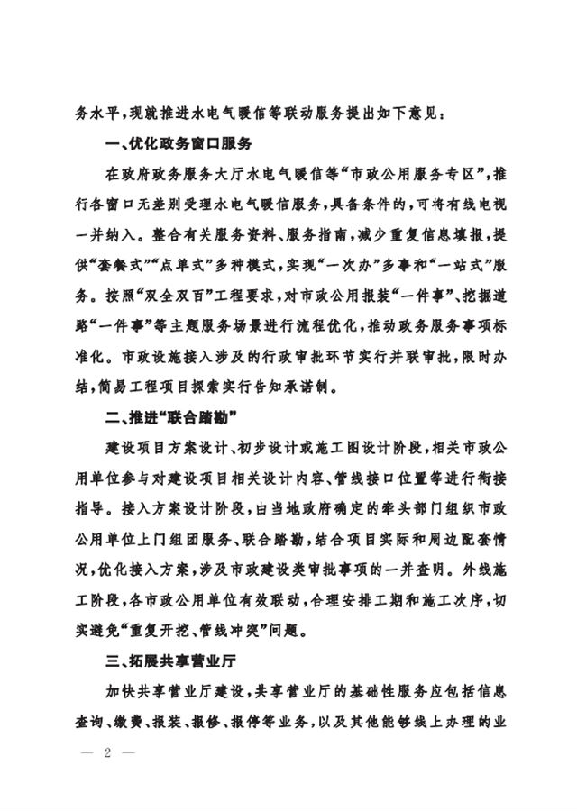關(guān)于推動(dòng)水電氣暖信等聯(lián)動(dòng)服務(wù)的指導(dǎo)意見