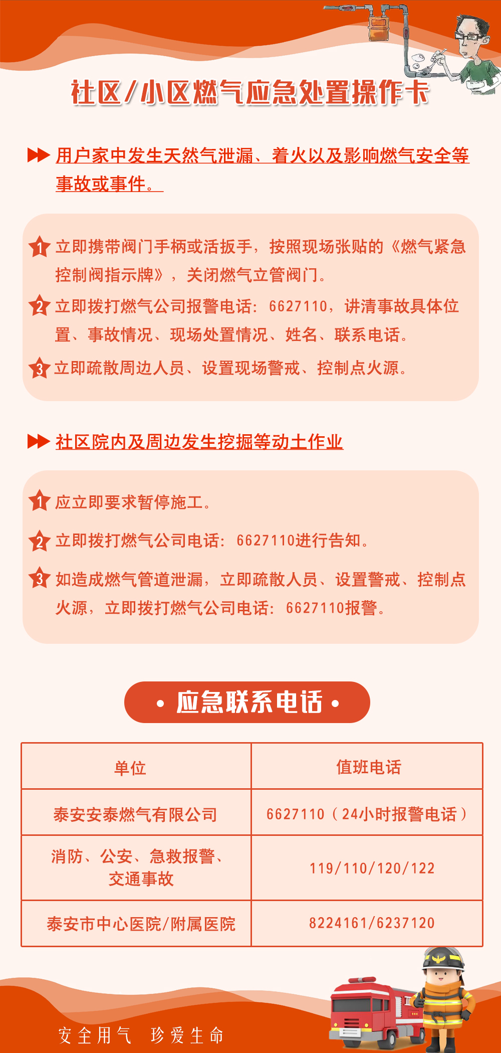 您好,很榮幸為您服務!燃氣安全關(guān)系到小區(qū)居民的生命和財產(chǎn)安全,一旦發(fā)生燃氣安全事故,將給居民的生命財產(chǎn)安全造成重大的損失和傷害。為了貴小區(qū)安全使用天然氣,安泰燃氣公司按照國務院《城鎮(zhèn)燃氣管理條例》、《山東省燃氣管理條例》、《城鎮(zhèn)燃氣室內(nèi)工程施工與質(zhì)量驗收規(guī)范》、《城鎮(zhèn)燃氣設(shè)計規(guī)范》等國家、地方、行業(yè)法律、法規(guī),現(xiàn)就貴小區(qū)燃氣設(shè)施安全告知如下: