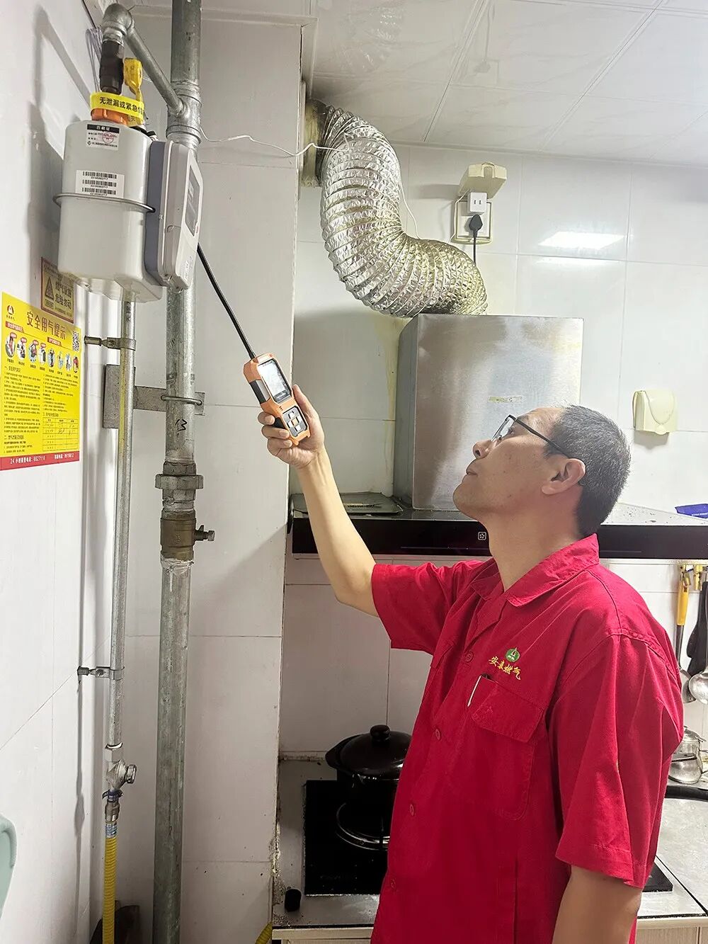 ③配合工作人員開展燃?xì)馊霊舭矙z,了解燃?xì)獍踩⒁馐马?。按照安檢人員的指導(dǎo)進(jìn)行操作,如打開燃?xì)忾y門、關(guān)閉燃?xì)庠O(shè)備等。如果您對安檢人員的操作有任何疑問或建議,請及時與他們溝通。