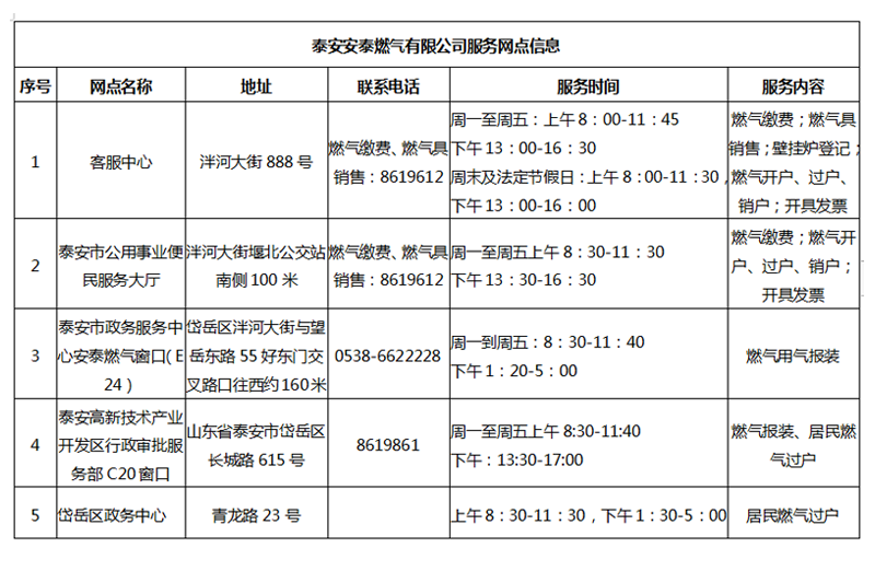 泰安安泰燃?xì)庥邢薰臼召M(fèi)信息公示